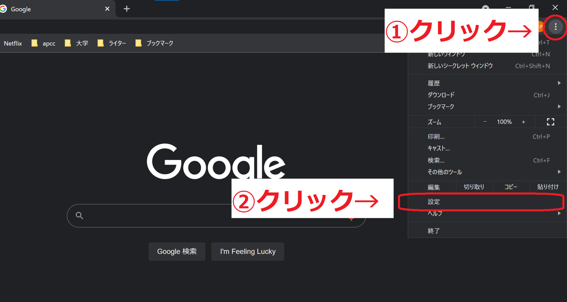 1.Google Chromeを起動して画面右上の「:」をクリック