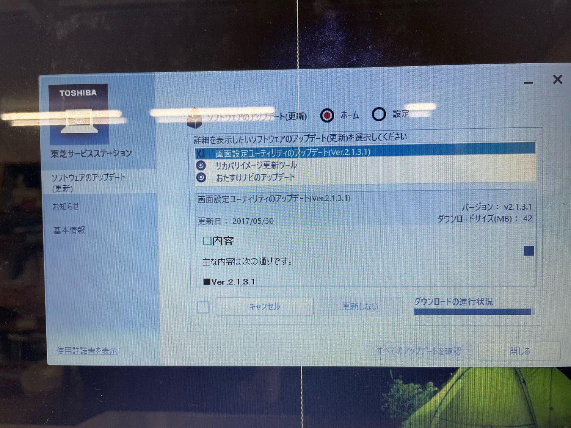 今回は東芝(TOSHIBA)さんのPCだったので、プリインストールのユーティリティ「TOSHIBA Service Station」を使い、BIOSを更新。