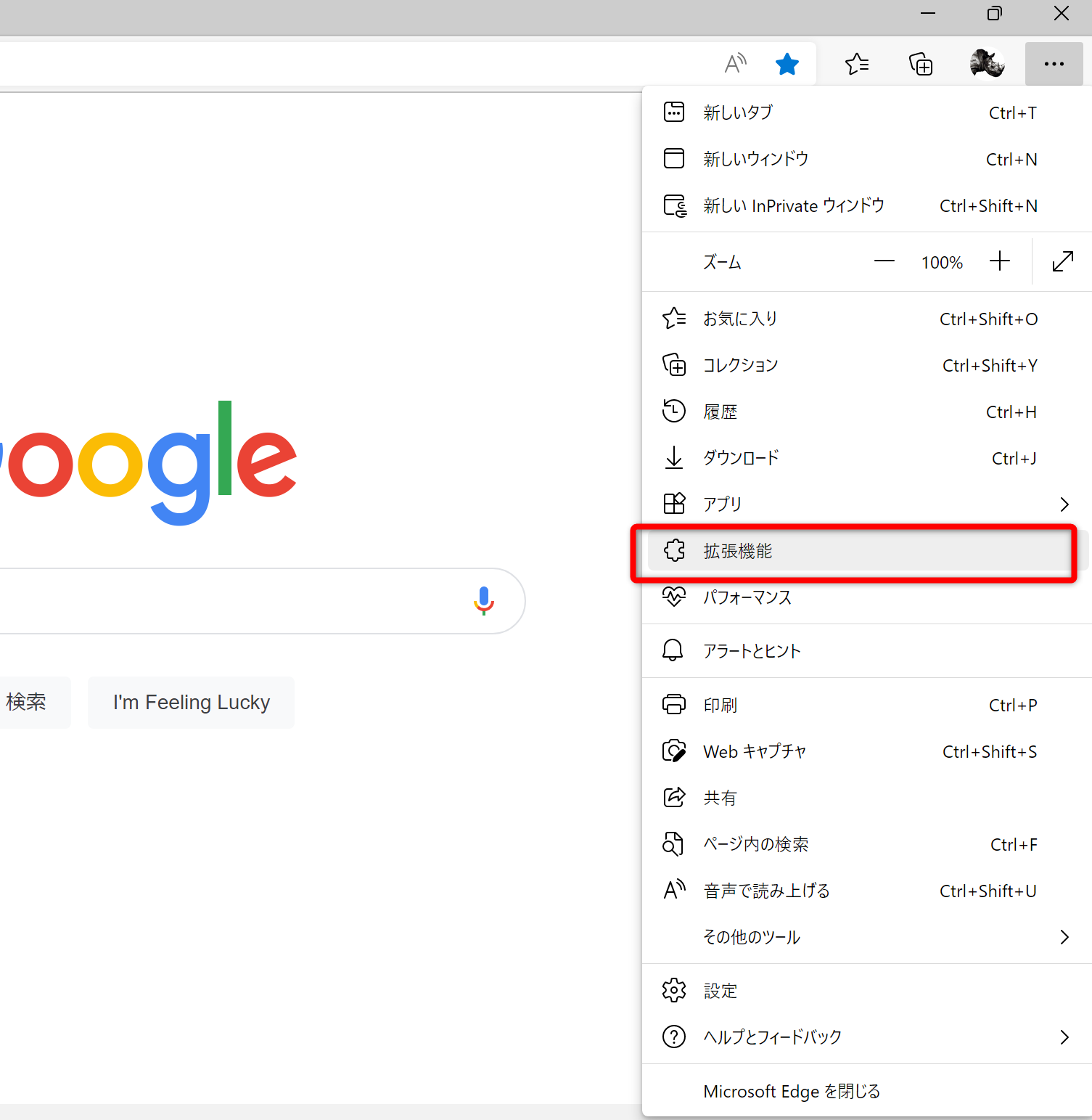 ③「拡張機能の管理」をクリックします。