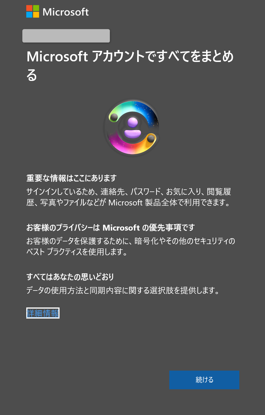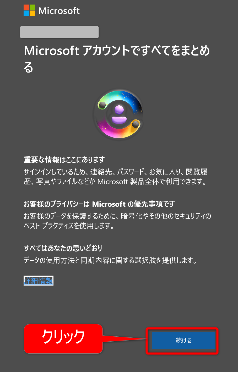 「Microsoftアカウントですべてをまとめる」