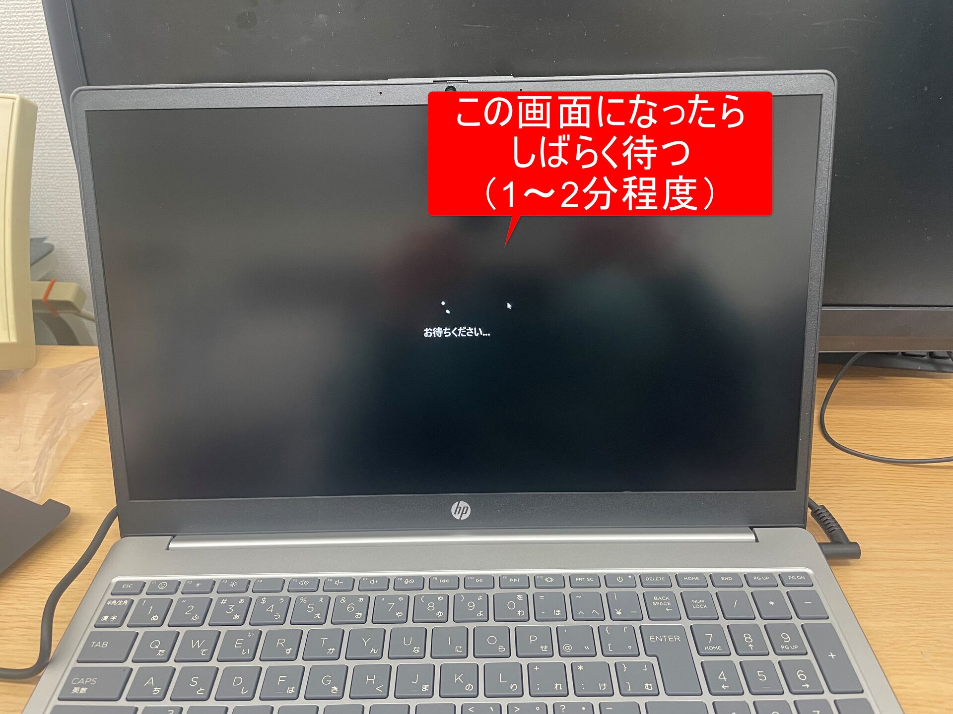 ⑮つづいて、PCのメーカーによっては以下のような画面が表示されます(画面はHPのノートPCのものです)。