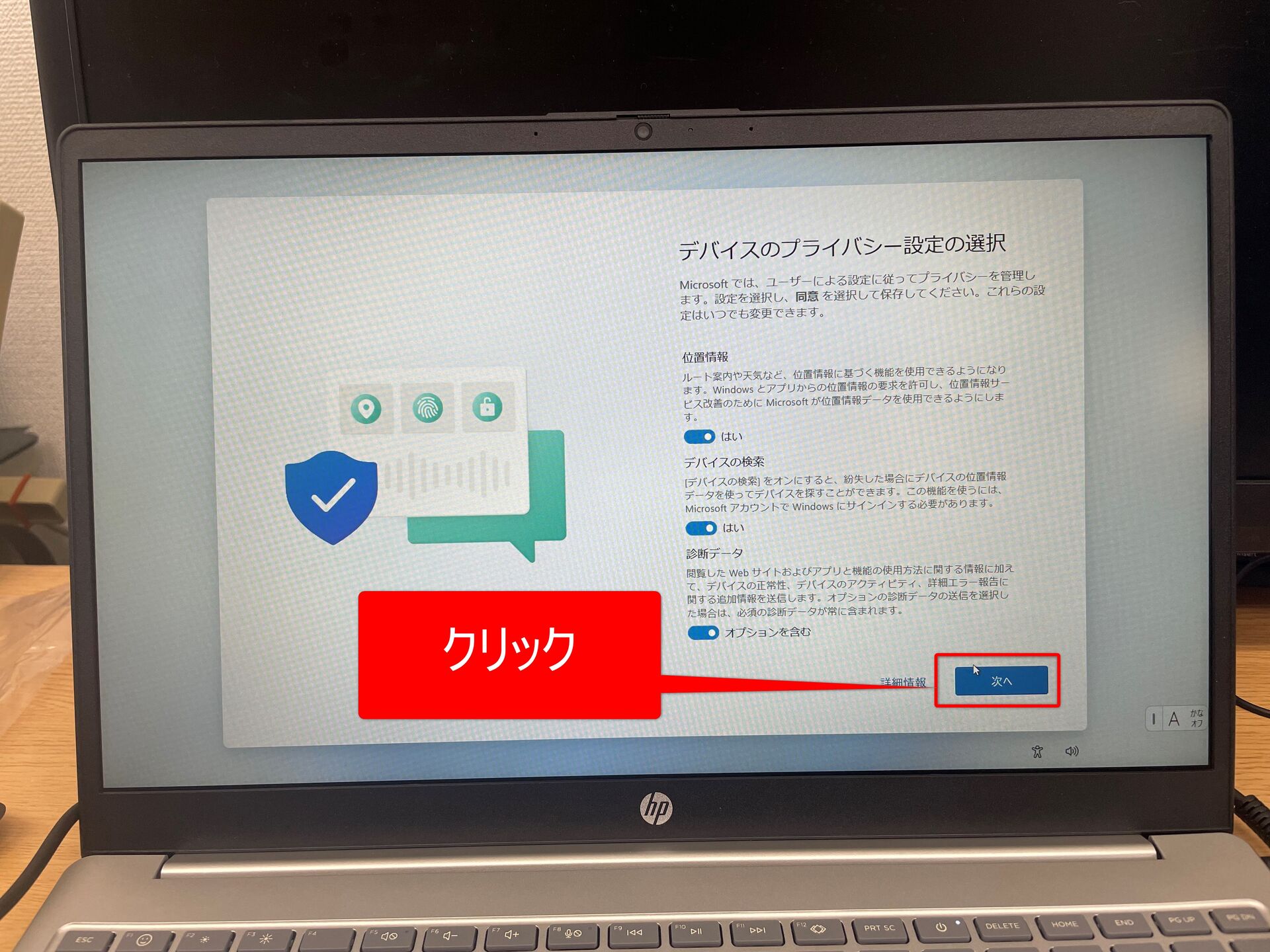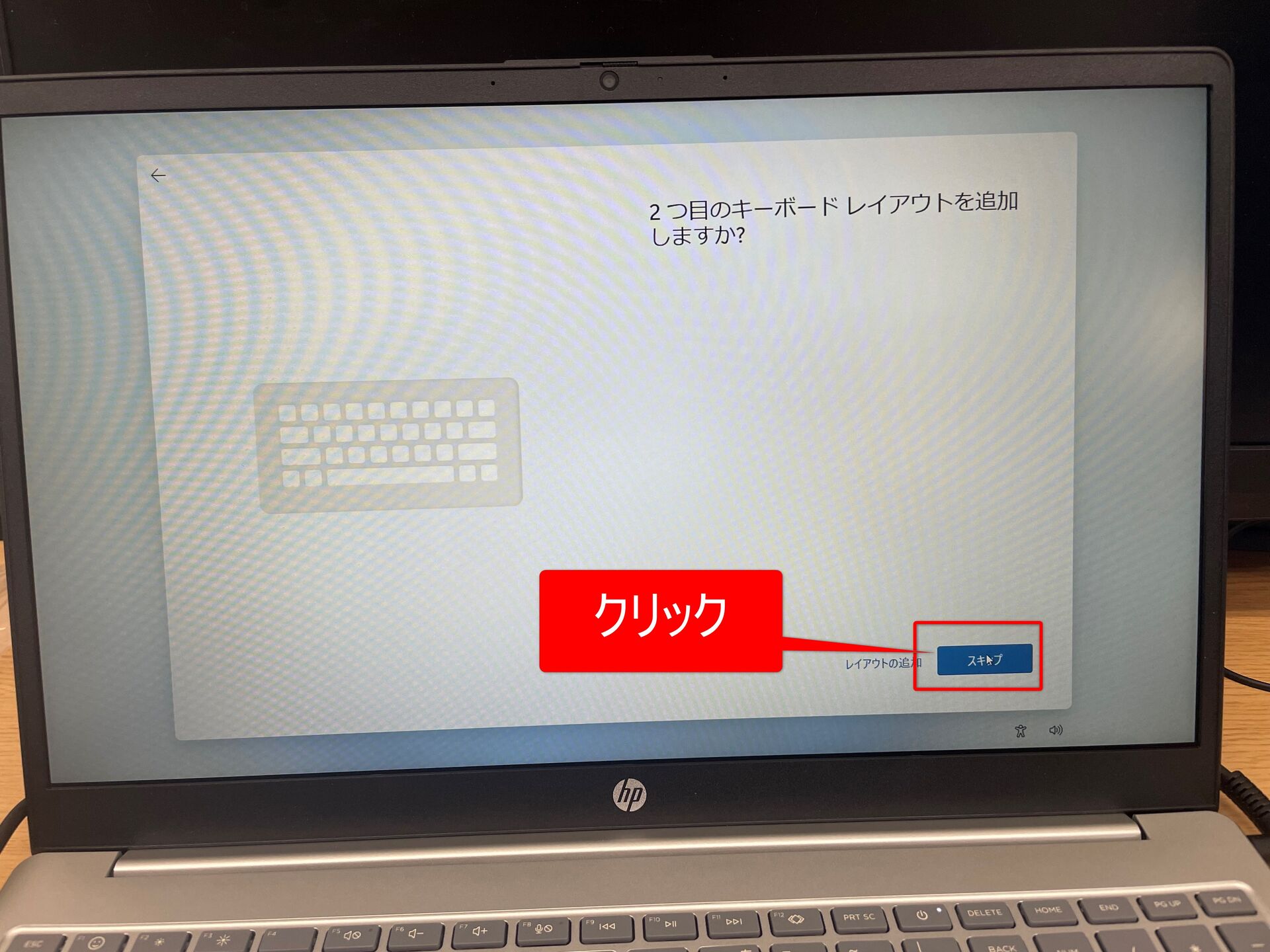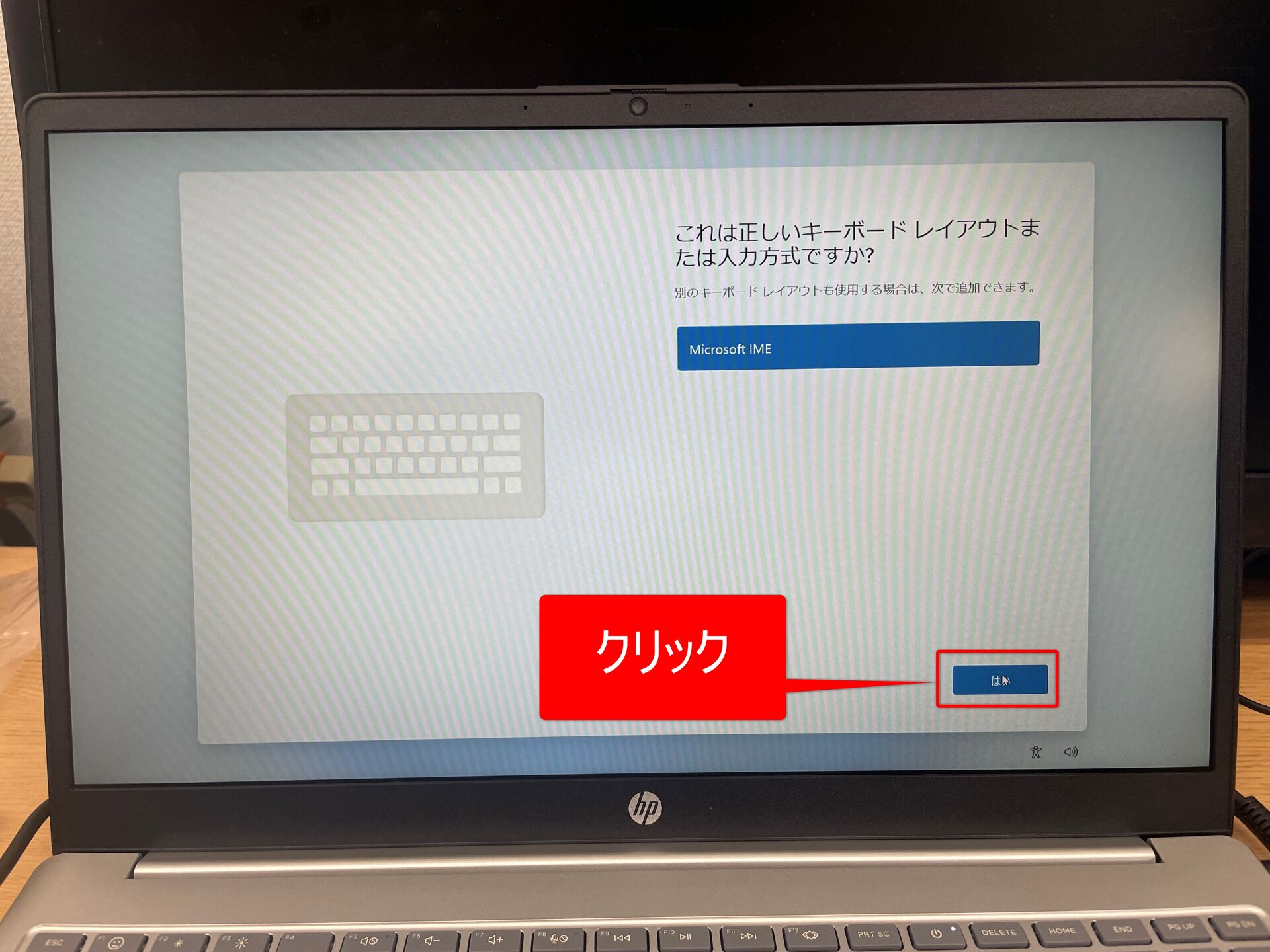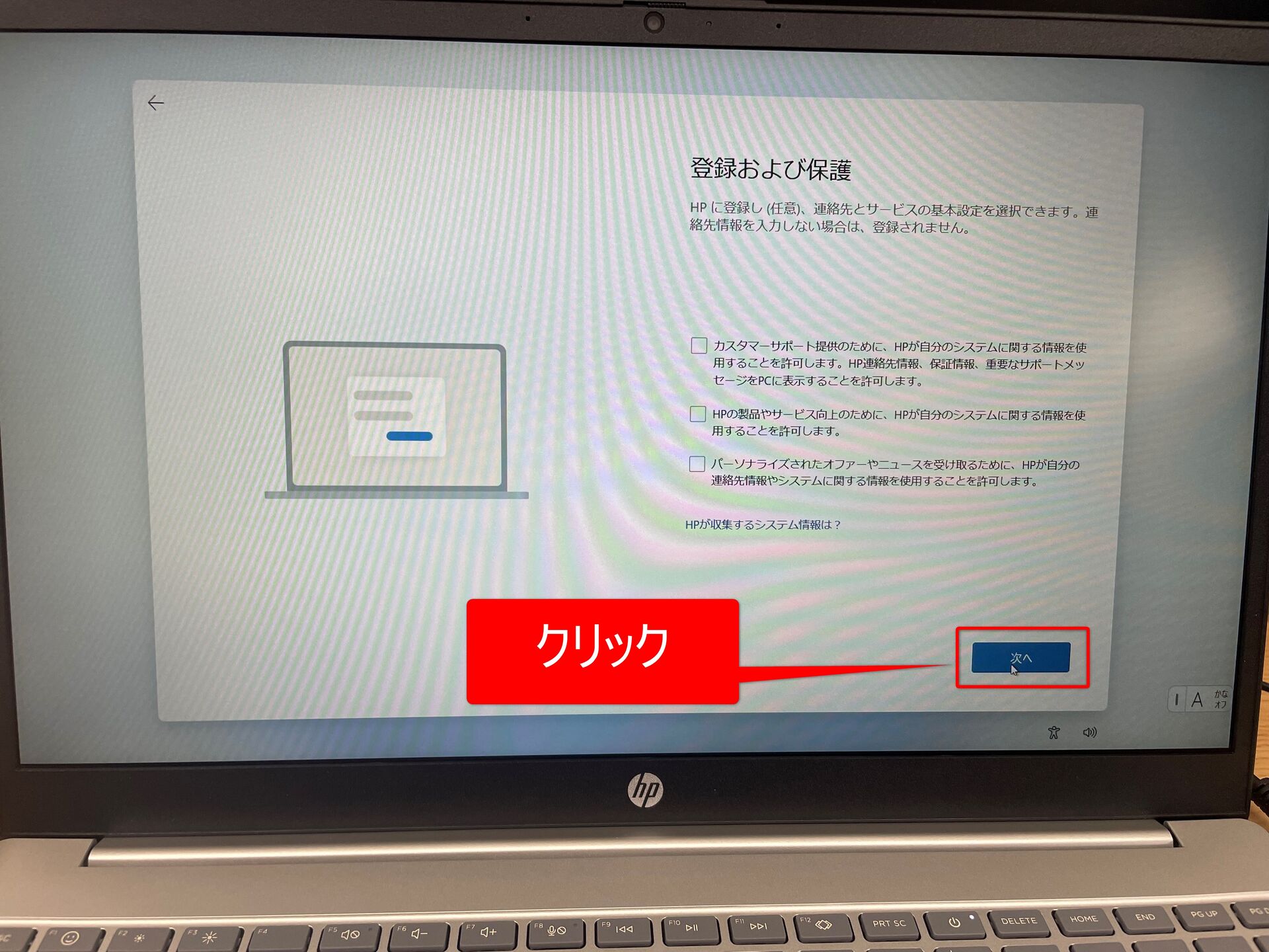 ⑭PCのメーカーによっては以下のような画面が表示されます(画面はHPのノートPCのものです)。