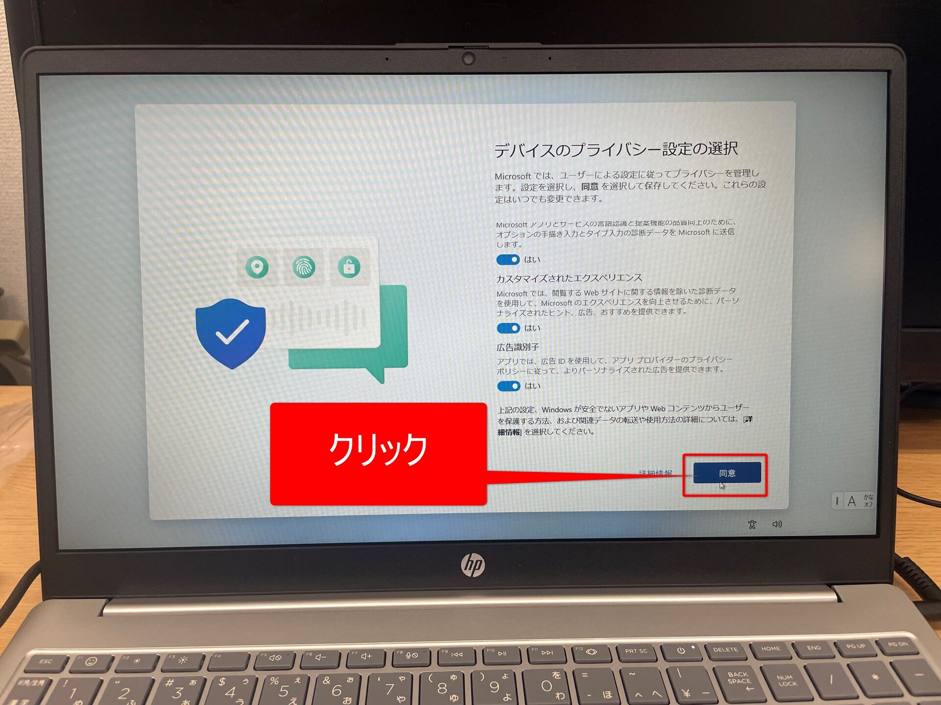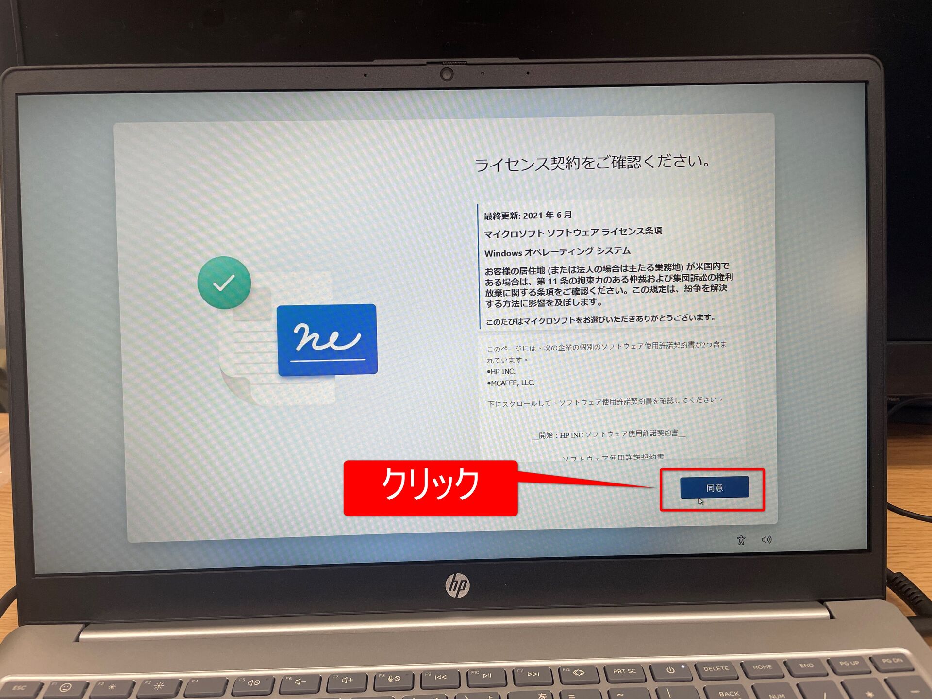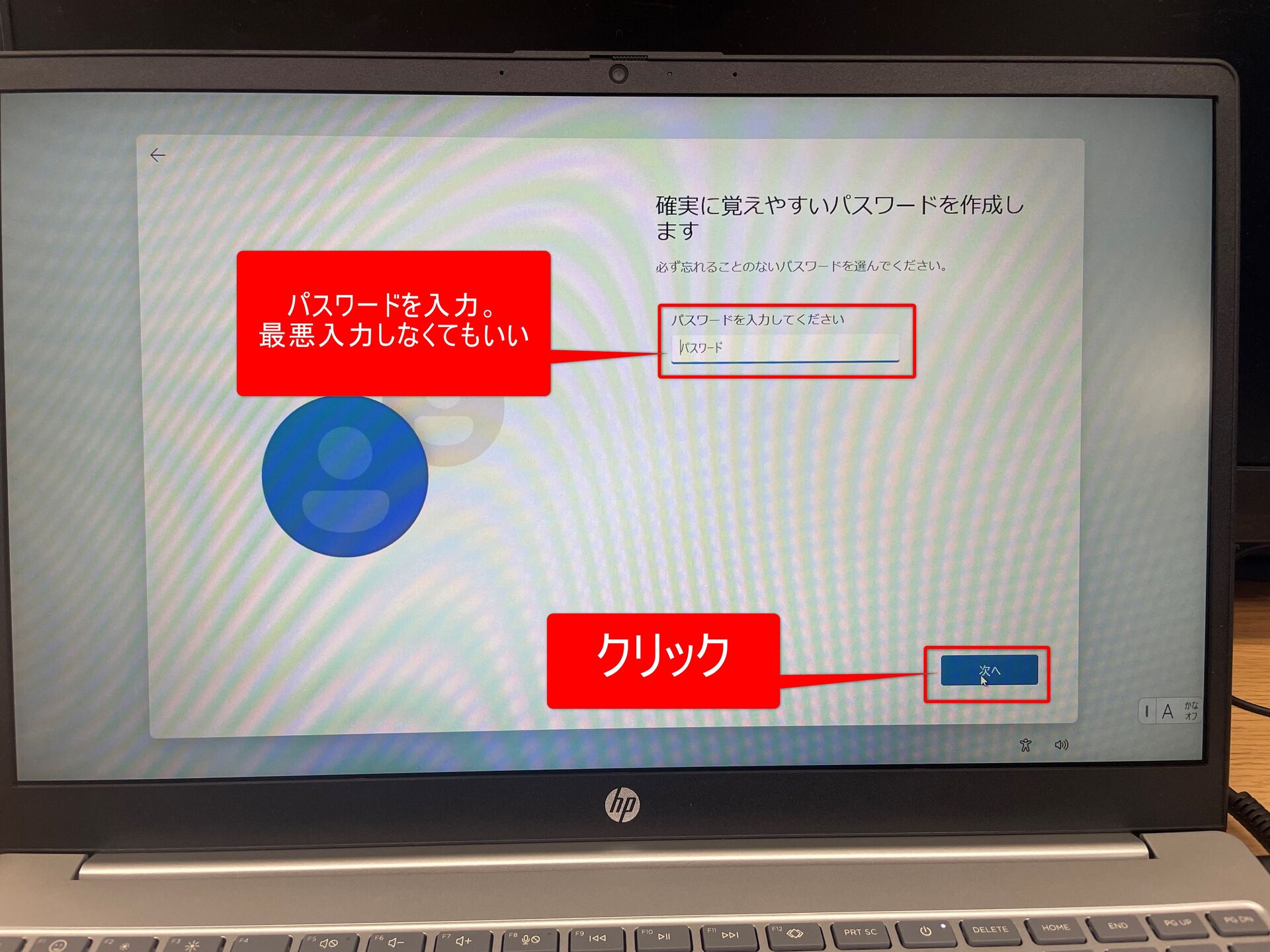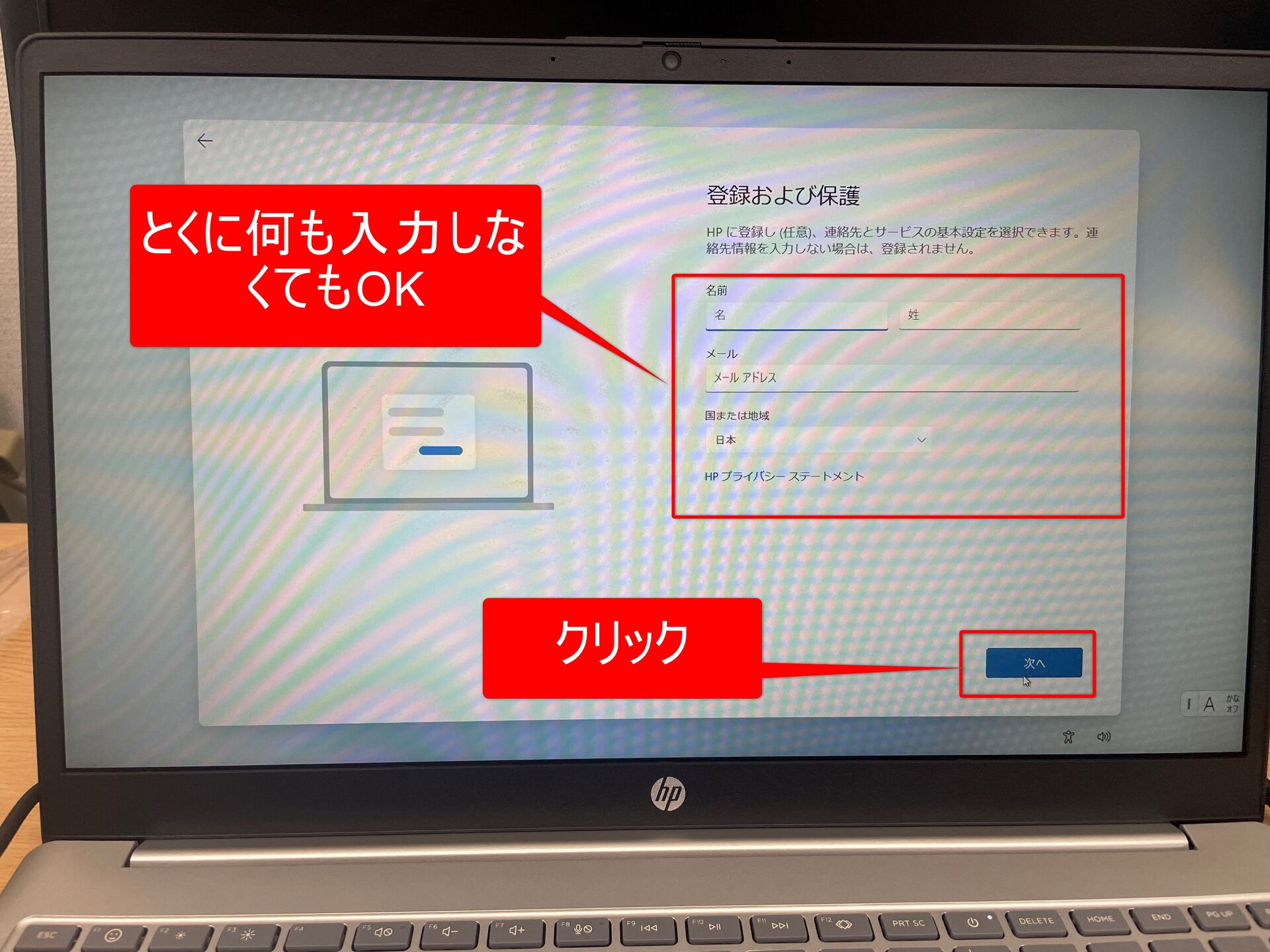 ⑭PCのメーカーによっては以下のような画面が表示されます(画面はHPのノートPCのものです)。