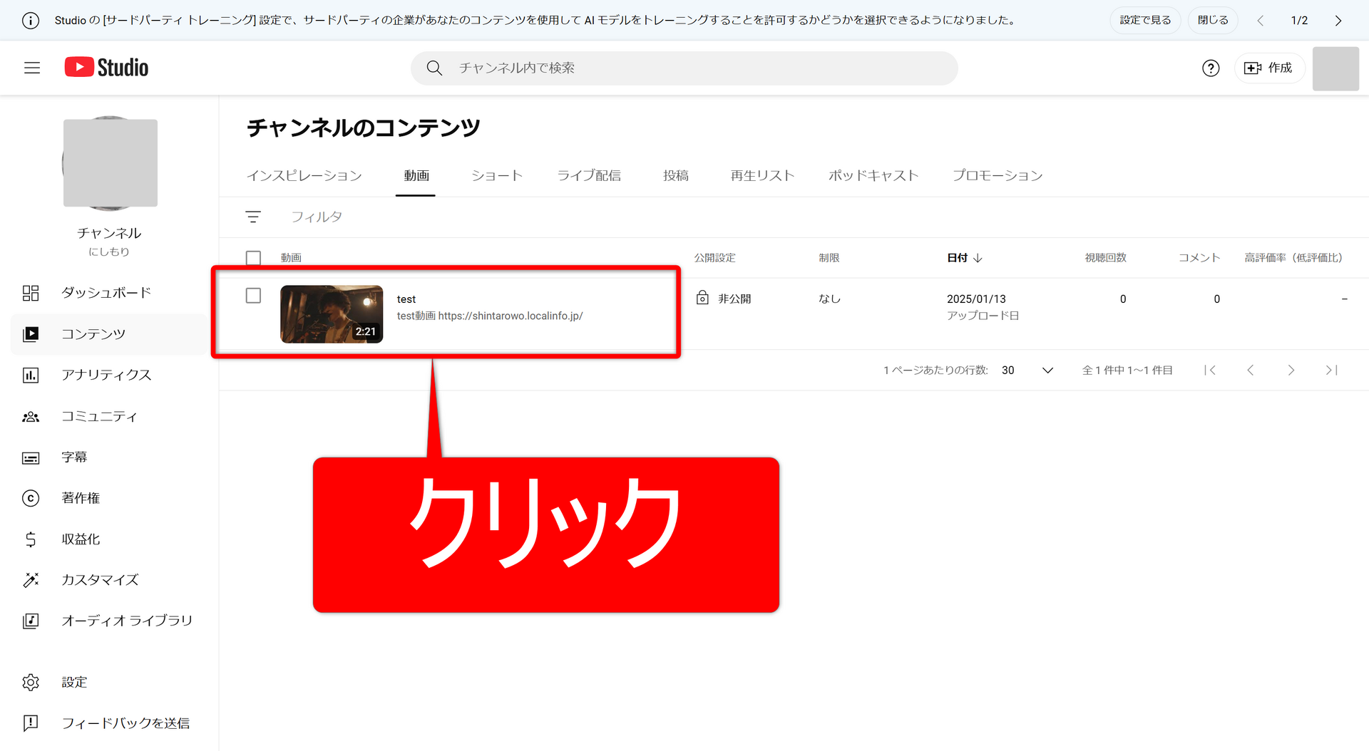 この作業、昔作ったチャンネルだと必要なかったはずです。