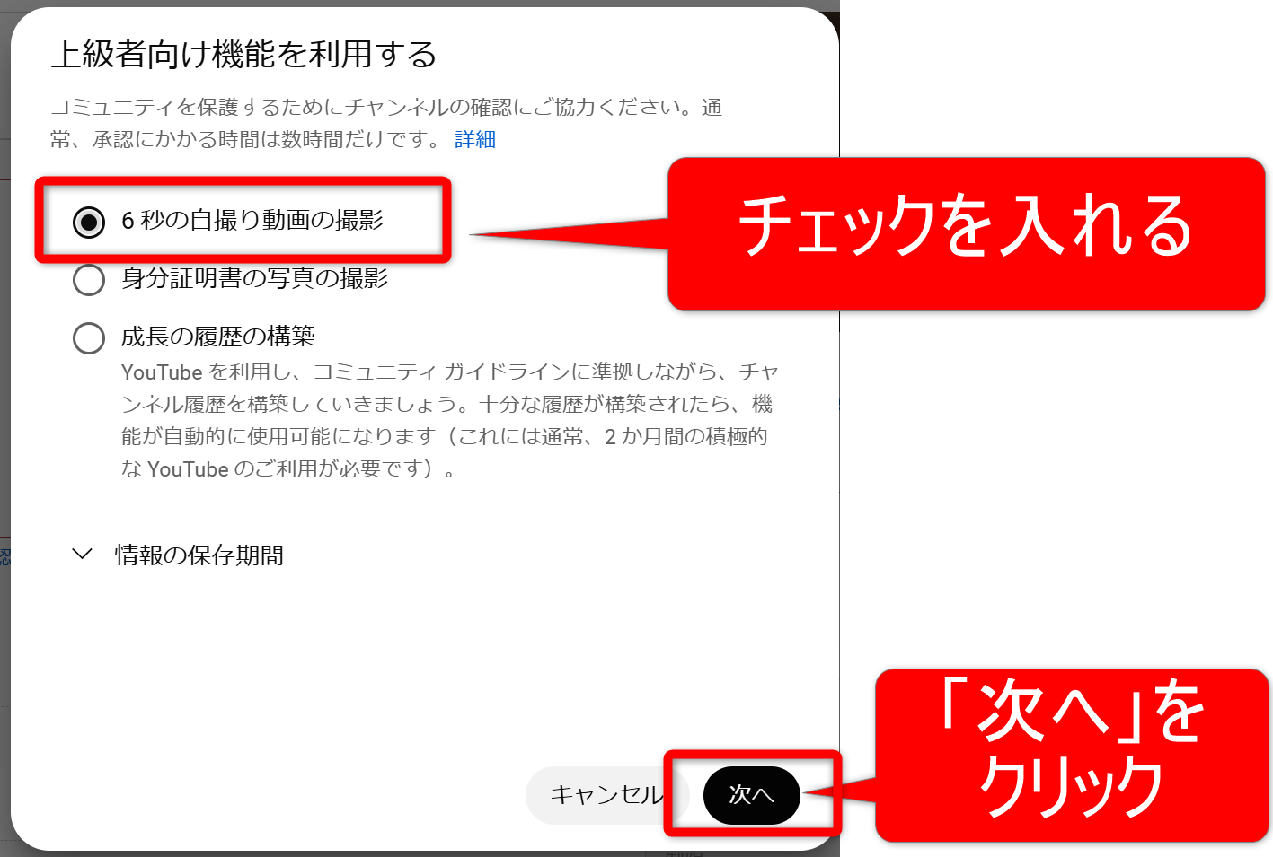 おすすめは「6秒の自撮り動画の撮影」です。ここでは、6秒の自撮り動画の撮影を選んだ場合の進め方を解説します。