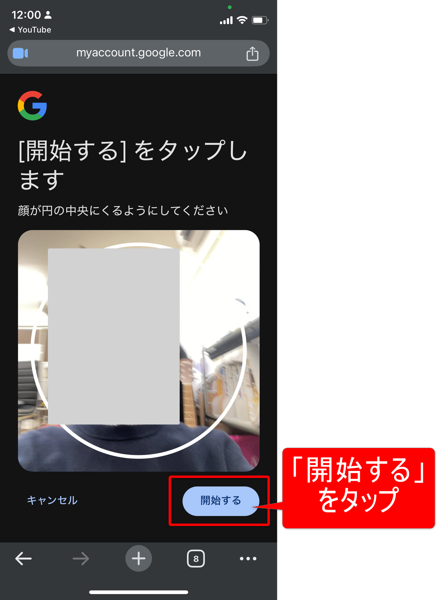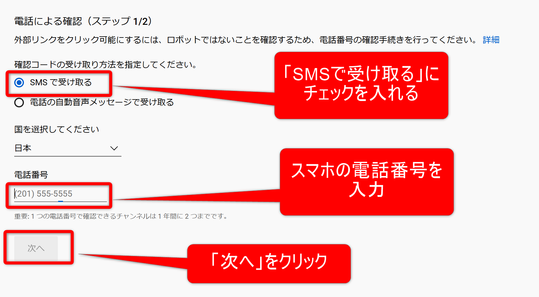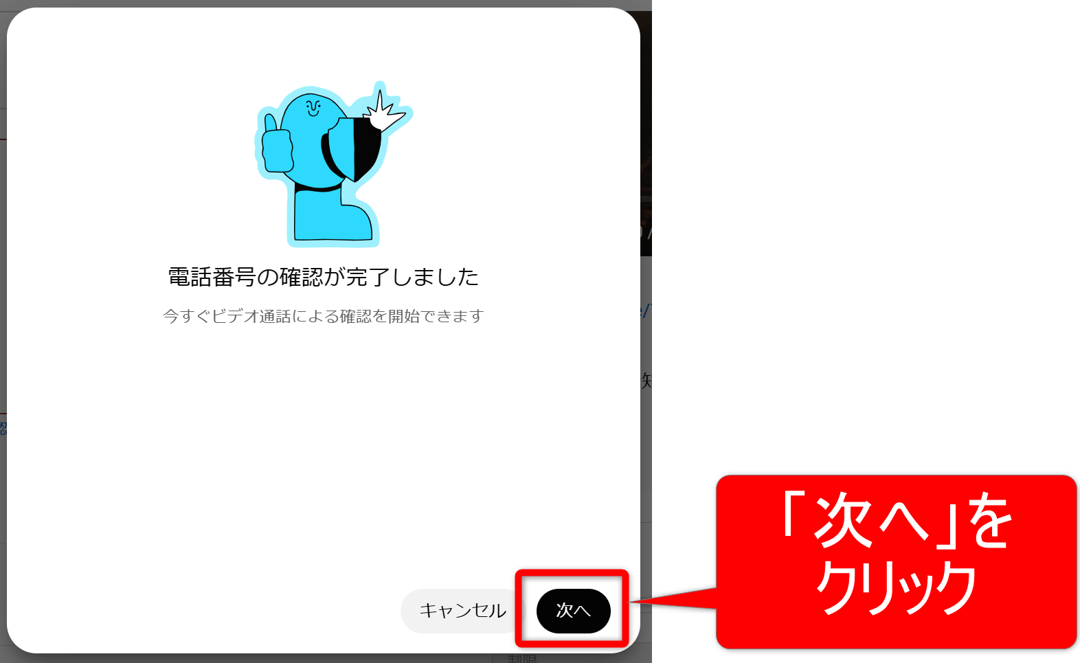 ⑦電話番号の認証が終わっていない場合、ここで電話番号の確認作業が始まります。
