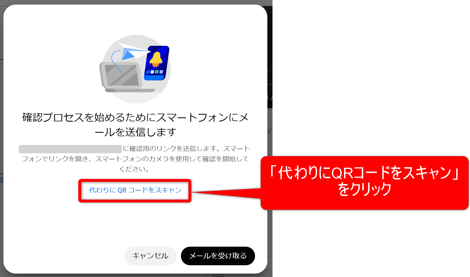 ⑭スマホにメールを送らせて認証もできますが、今回はQRコードで認証してみます。