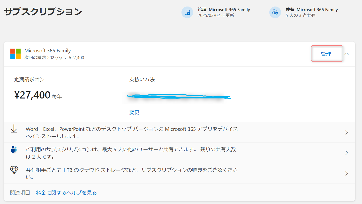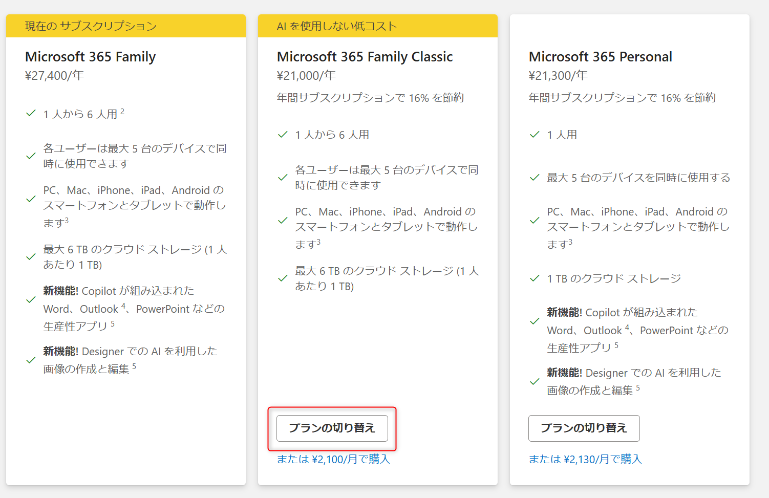 (この画面は Family サブスクリプションですが Personalでも同じです)