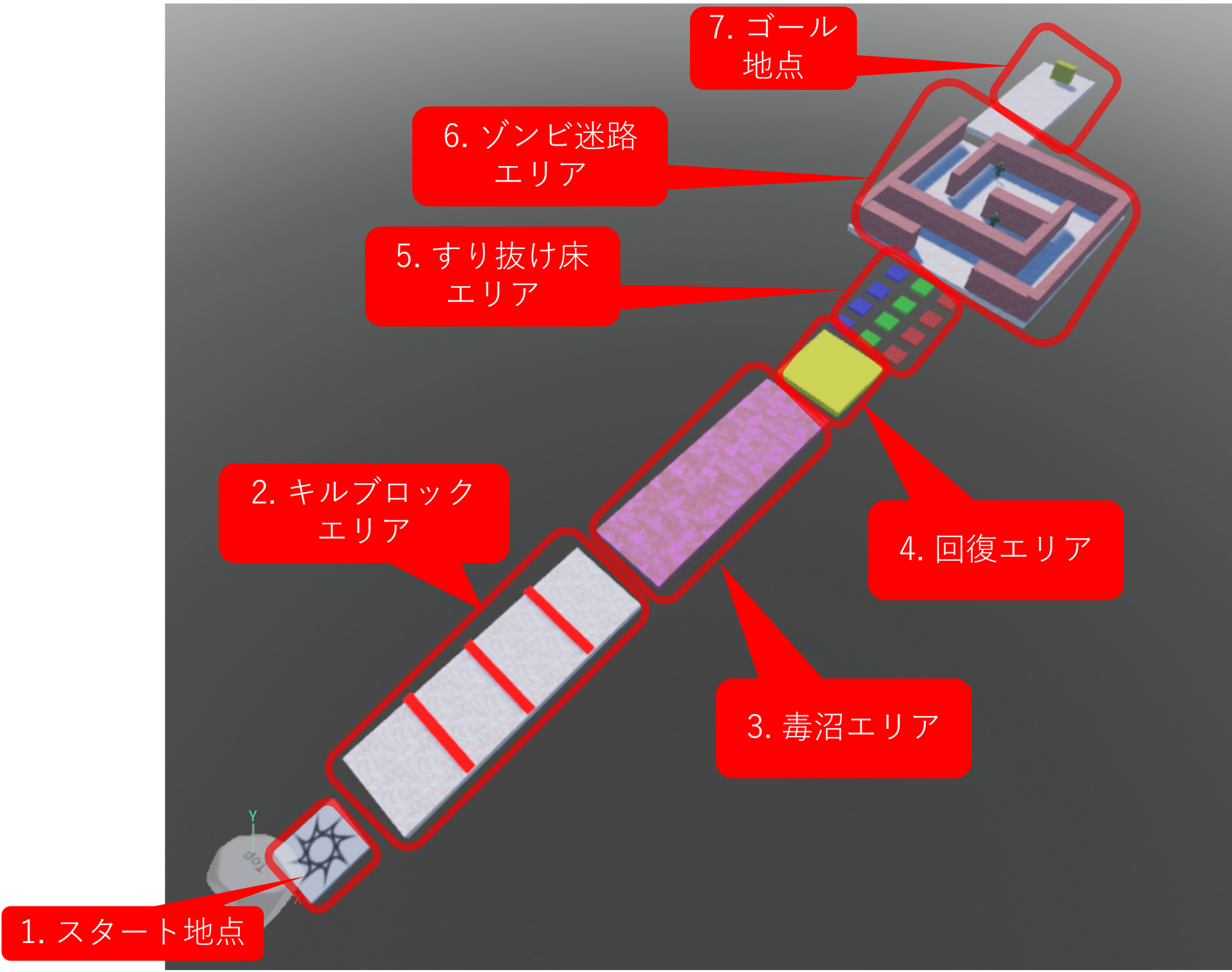 プレイヤーを自動で攻撃する「ゾンビ」が配置されたエリア