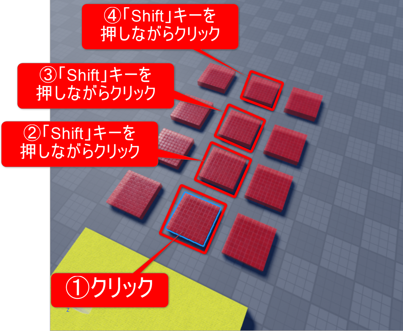 ④「Shift」キーを押しながら、一番奥のパーツをクリックします。