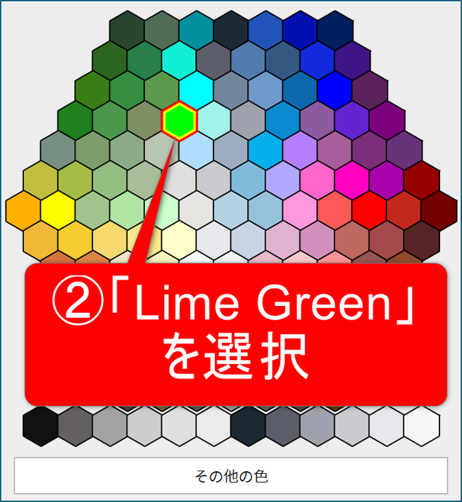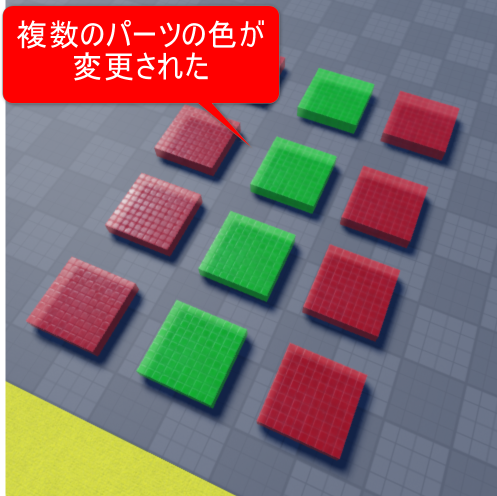 下図のように、真ん中の列の4つのパーツの色が緑色に変更できていれば成功です!