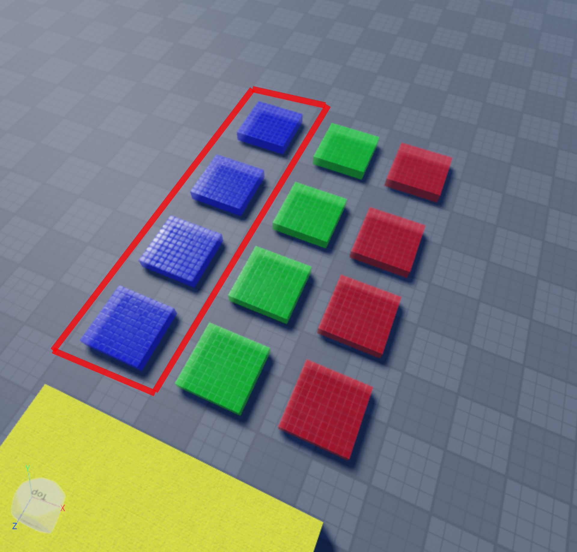 ③同じ要領で、左側4つのブロックの色を「Really Blue」に変更しておきます。