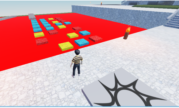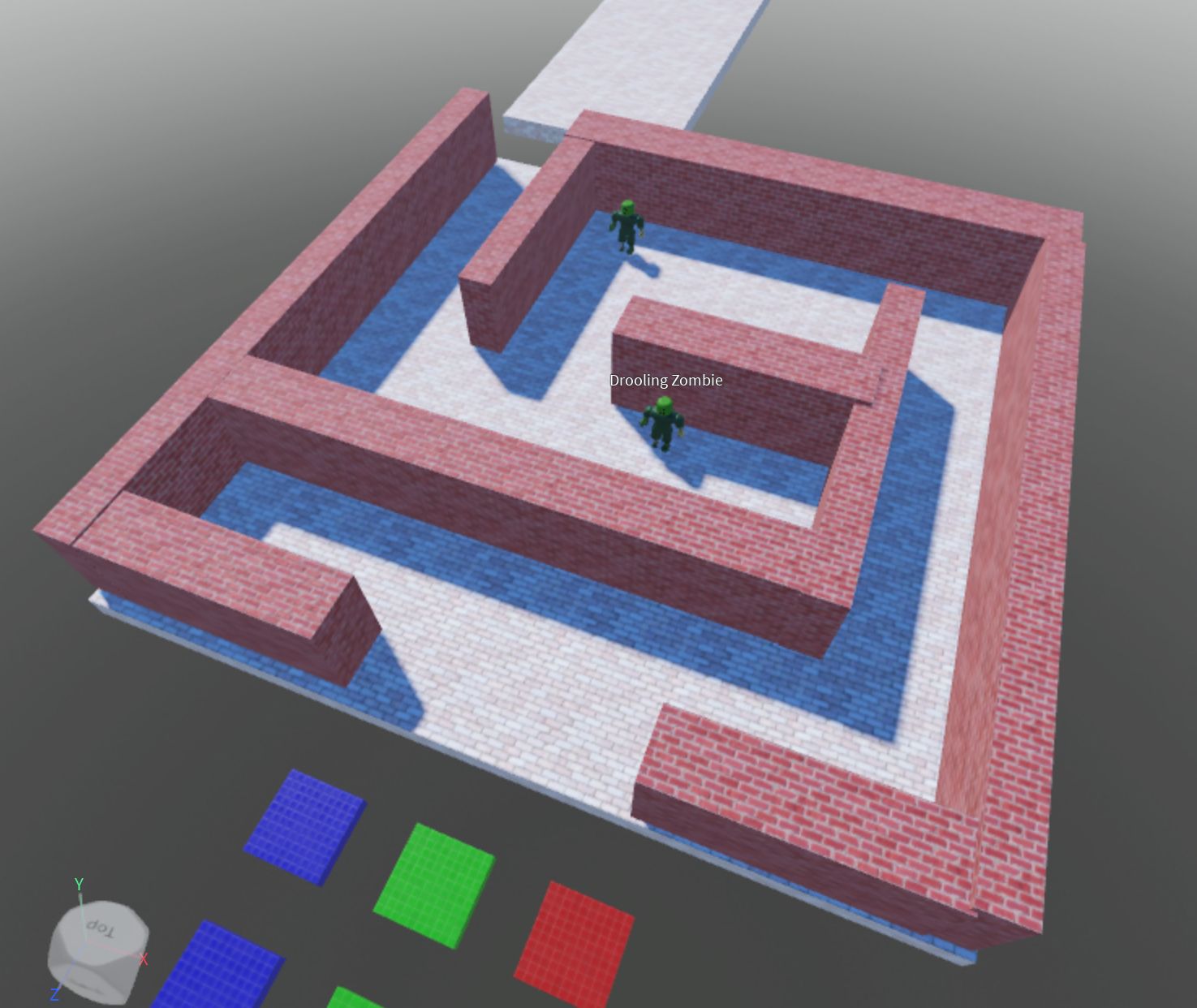 ②先ほど作ったブロックを複製したり、拡大したりして、ゾンビ迷路エリアの床の上に自由に配置しましょう。
