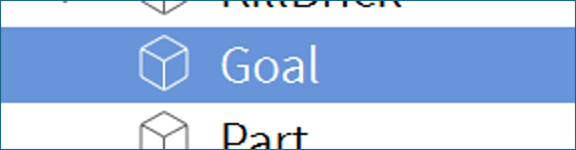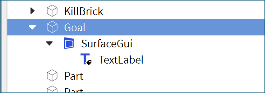 「Goal」パーツの中に「SurfaceGui」があり、さらにその中に「TextLabel」が入っている状態です。
