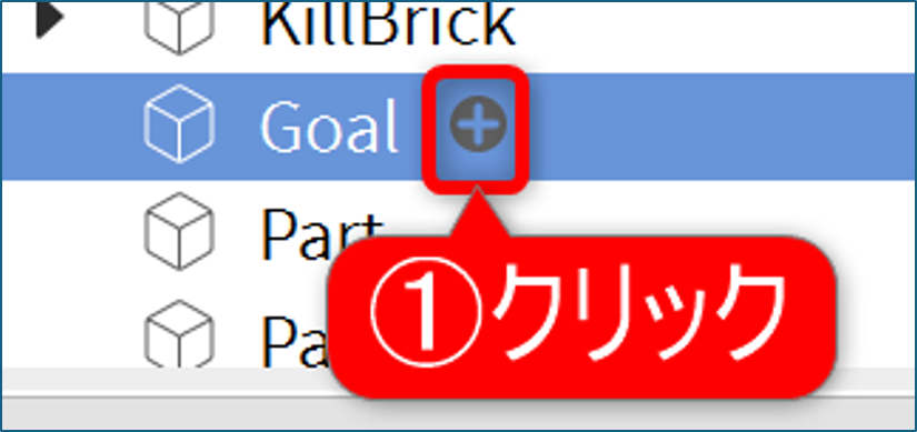 ①エクスプローラーで「Goal」をポイントし、右側の「+」をクリック