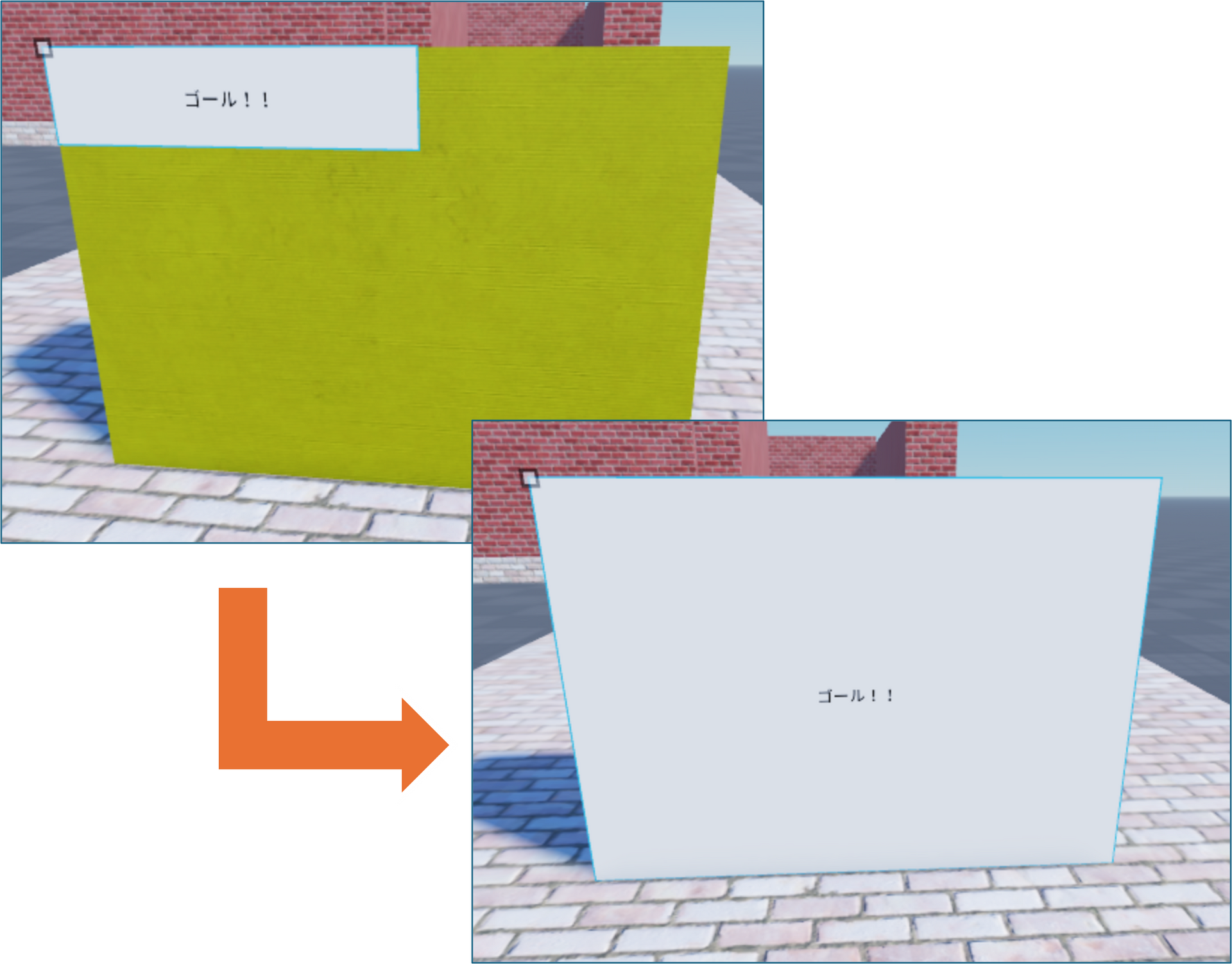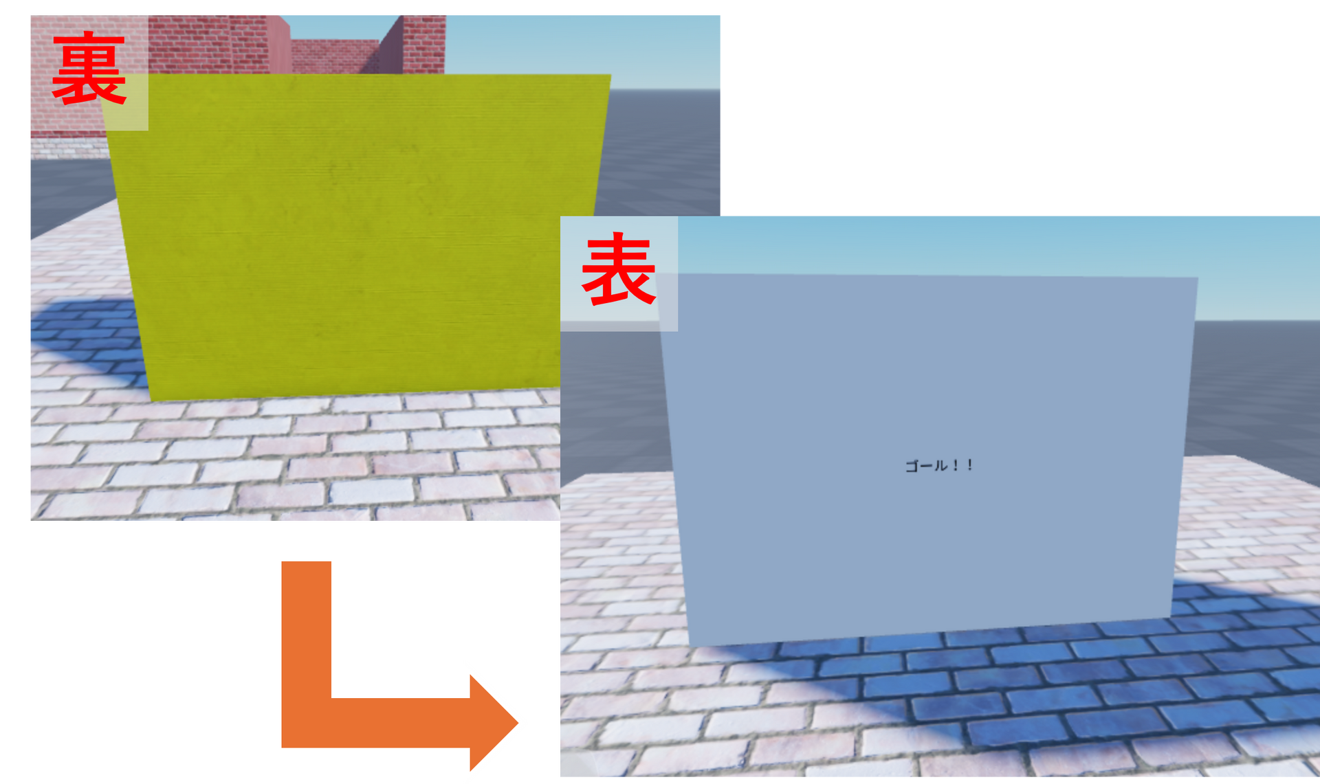 ④テキストの表示位置が変更されました。 背面からの表示が消えましたが、パーツの正面側に回ると「ゴール!!」と表示されています。