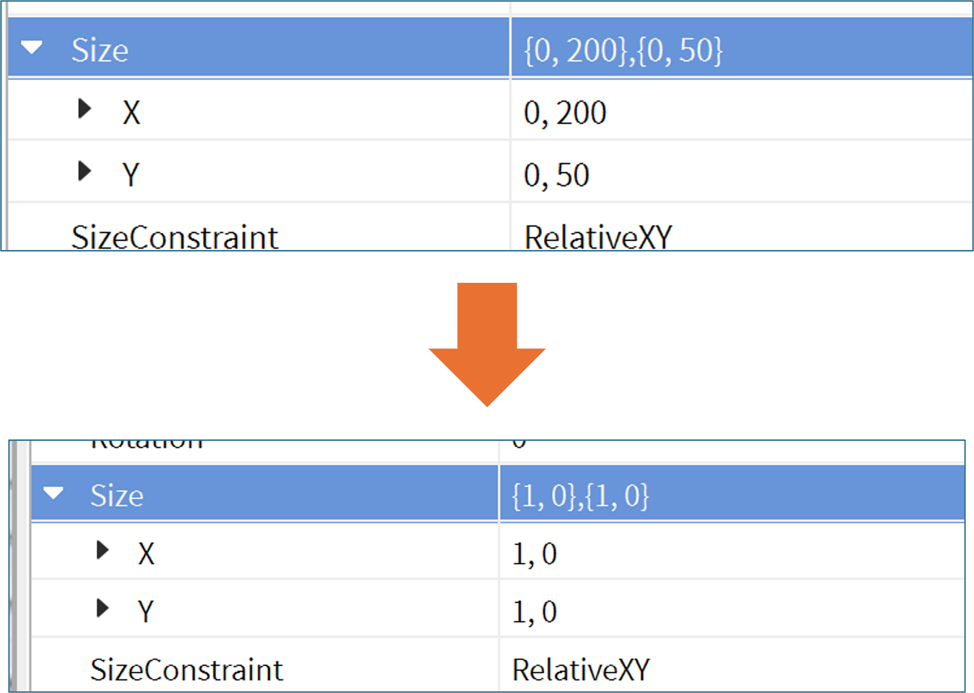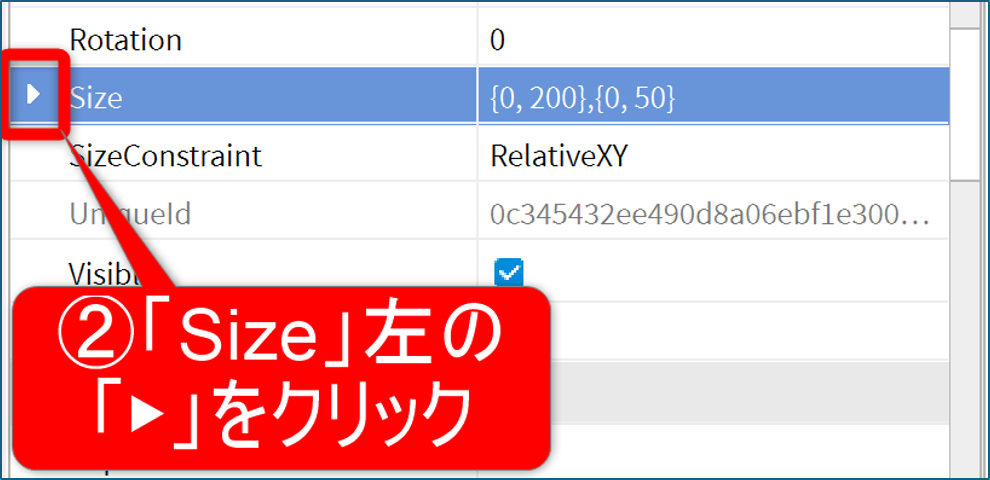 ②プロパティを下方にスクロールし、「Size」左側の「▶」をクリック